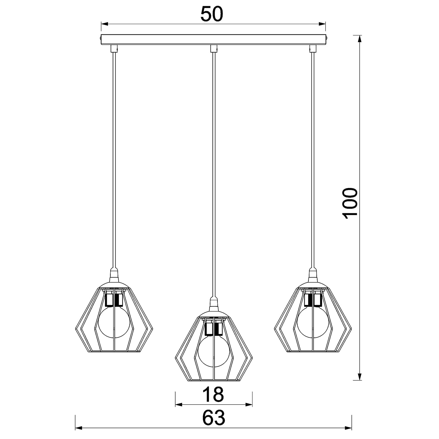 żyrandol Leti, line bar 500mm, wire shade diamond, 3xE27
